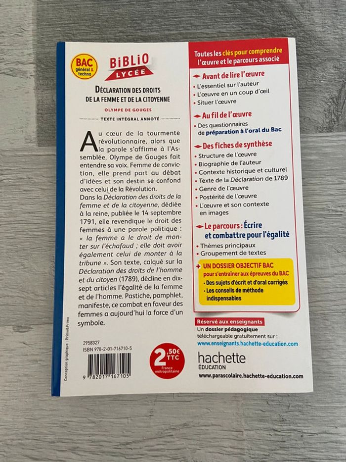 Livre déclaration des droits de la femme et de la citoyenne Olympe de Gouge en tbe Réductions activées .