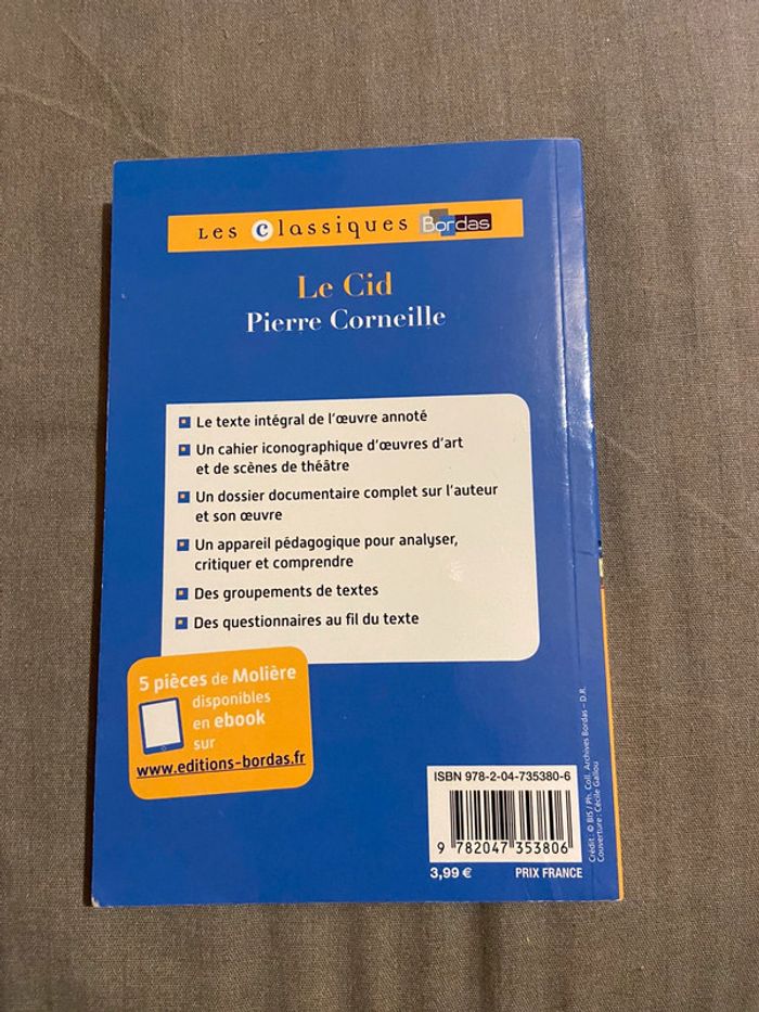 Bonjour Je vends livre Pierre Corneille le Cid en tbe . Réductions activées. #patricia09091980_livres