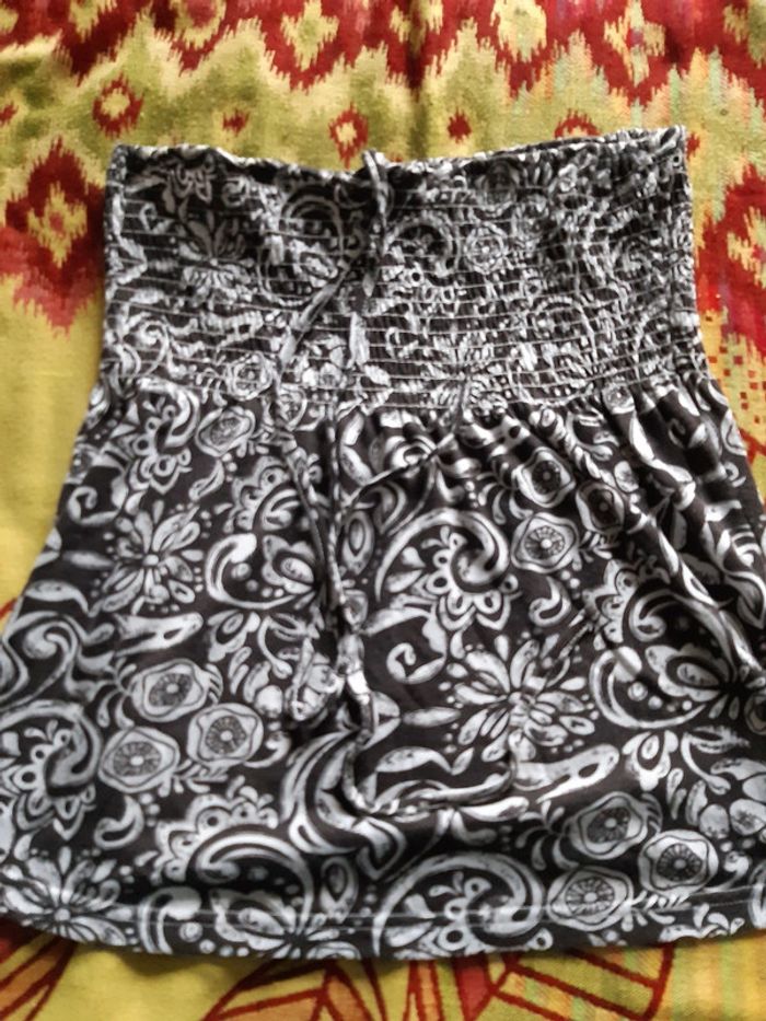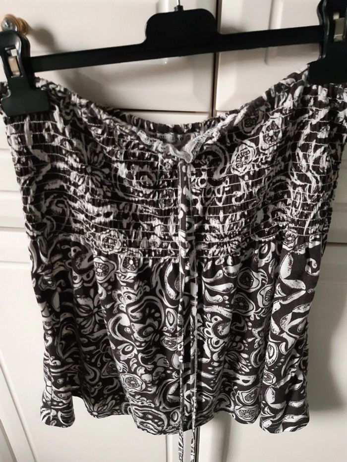 Haut femme ou peut se mettre en jupe Marron blanc Longueur 44 cm Aisselles à Aisselles 36 cm
