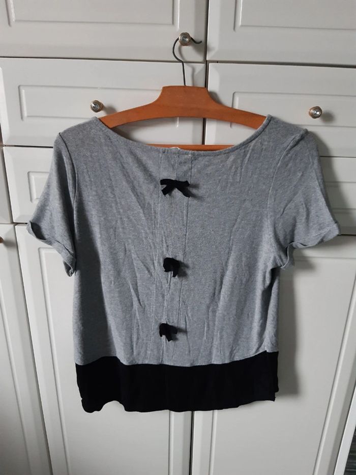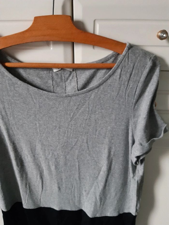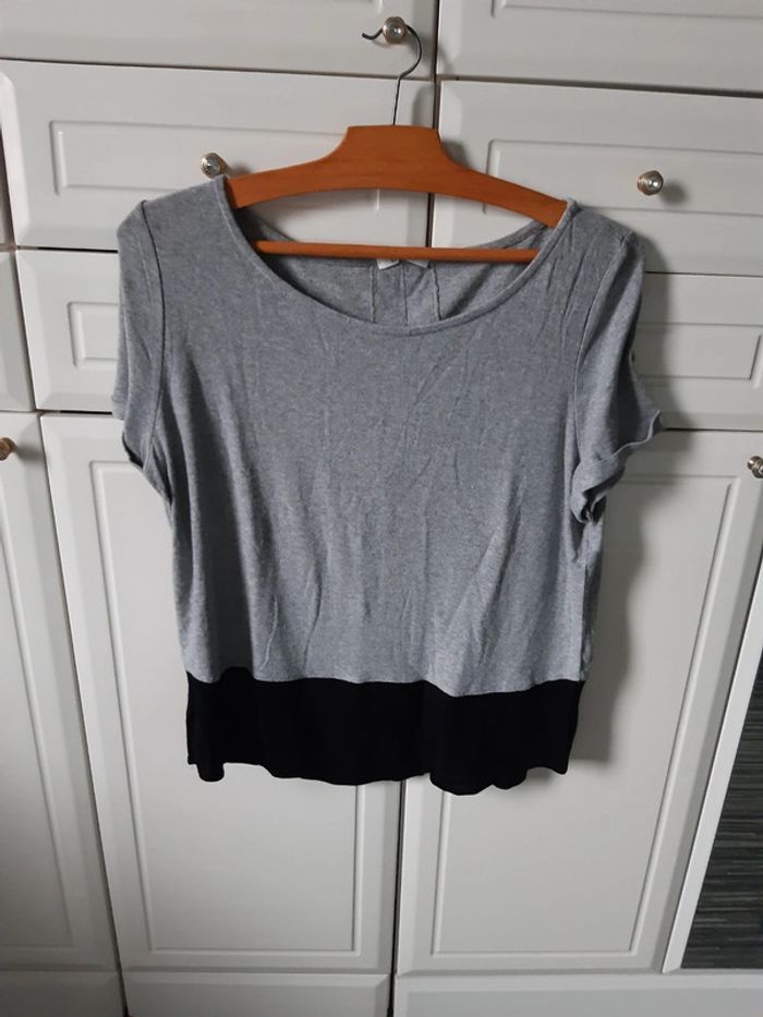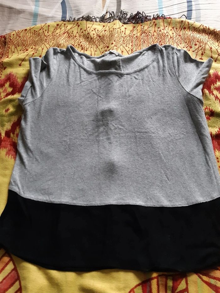 Tee-shirt femme Promod Gris,noir Longueur 55 cm Aisselles à Aisselles 42 cm