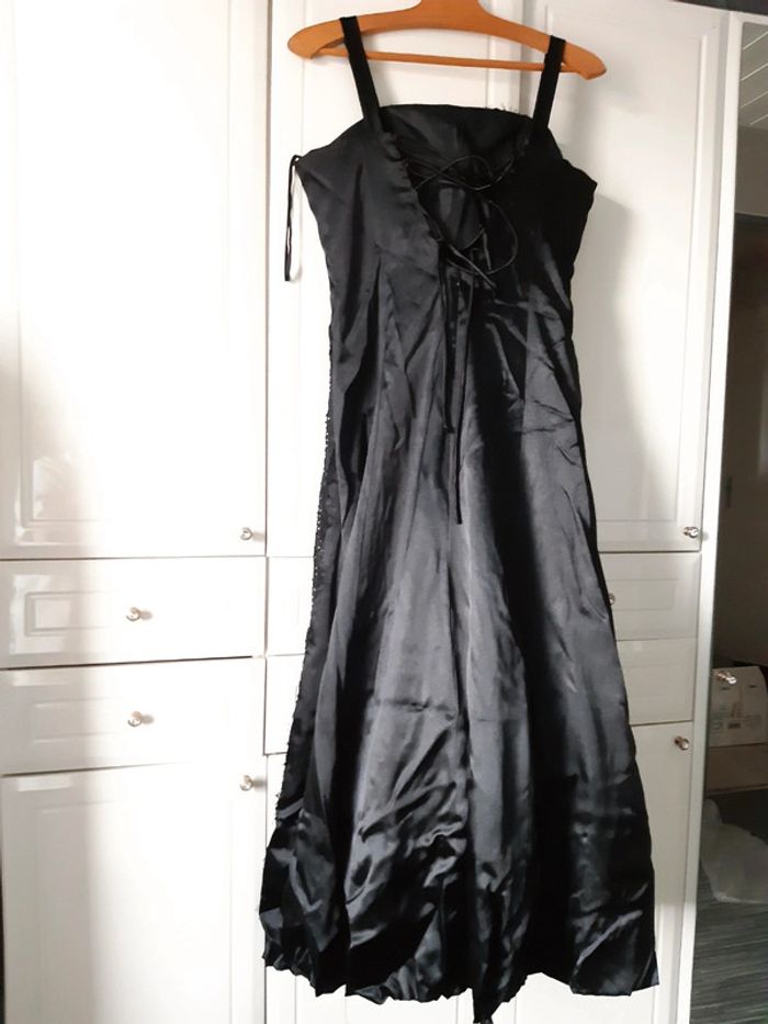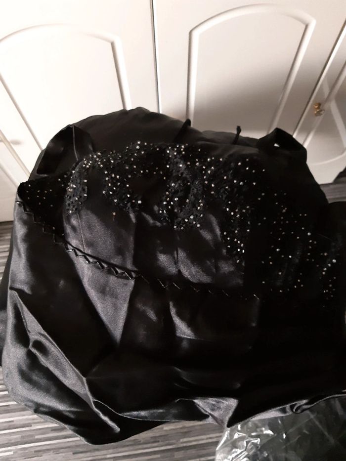 Robe femme De soirée, défilé Noire Soie,pailletée Taille 36 Longueur 1m18