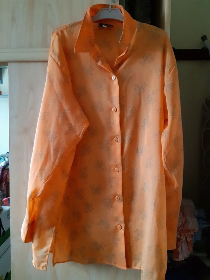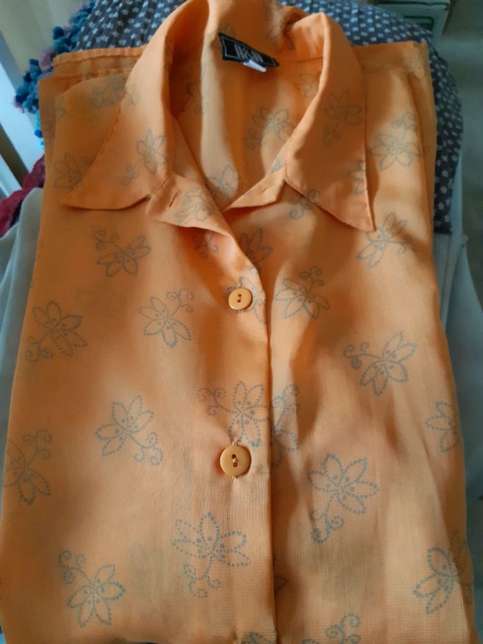 Tunique femme A&A Taille 38/40 Orange,petites fleurs Longueur 78 cm Manches longues 47 cm Bon état