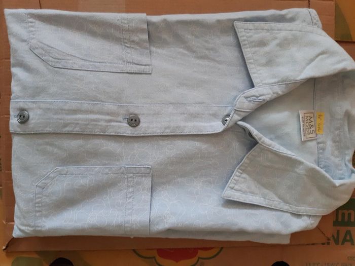 Chemise femme Ms mode Bleu fleur blanche Taille 40,42 Manche courte Longueur 65 cm