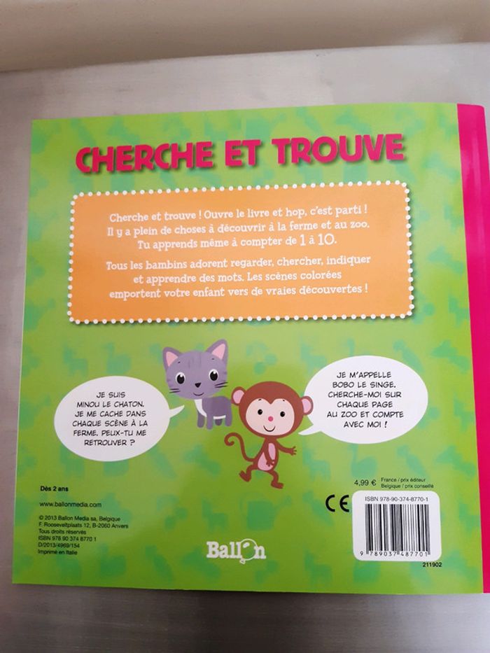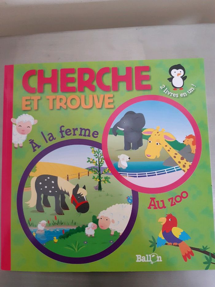 Livre enfants Cherche et trouve 2 livres en un Ballon A la ferme au zoo 22 sur 22 cm Épaisseur 0,3 cm