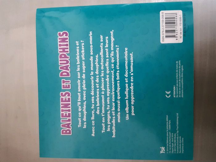 Livre enfants J'apprends en m'amusant Baleines et dauphins Neuf Super stickers 17 sur 17 cm Épaisseur 0,2 cm