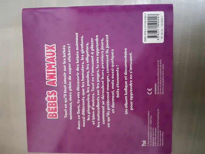Livre enfants J'apprends en m'amusant Avec super stickers Bébé animaux Neuf 17 sur 17 cm Épaisseur 0,2 cm
