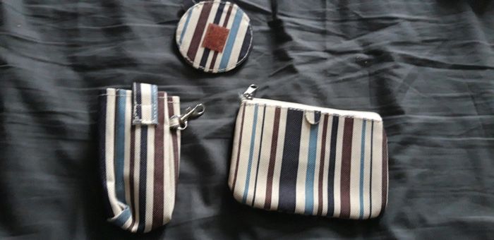 Ensemble de sac à main 1 porte téléphone 1 glace de poche 1 porte-monnaie Très bon état Rayé bleu, blanc, marron