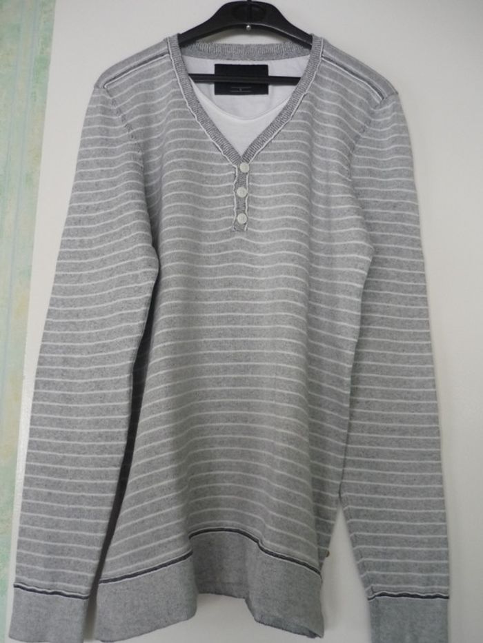 Pull homme Bonobo Jeans Taille S gris rayé longueur 66 cm bon état