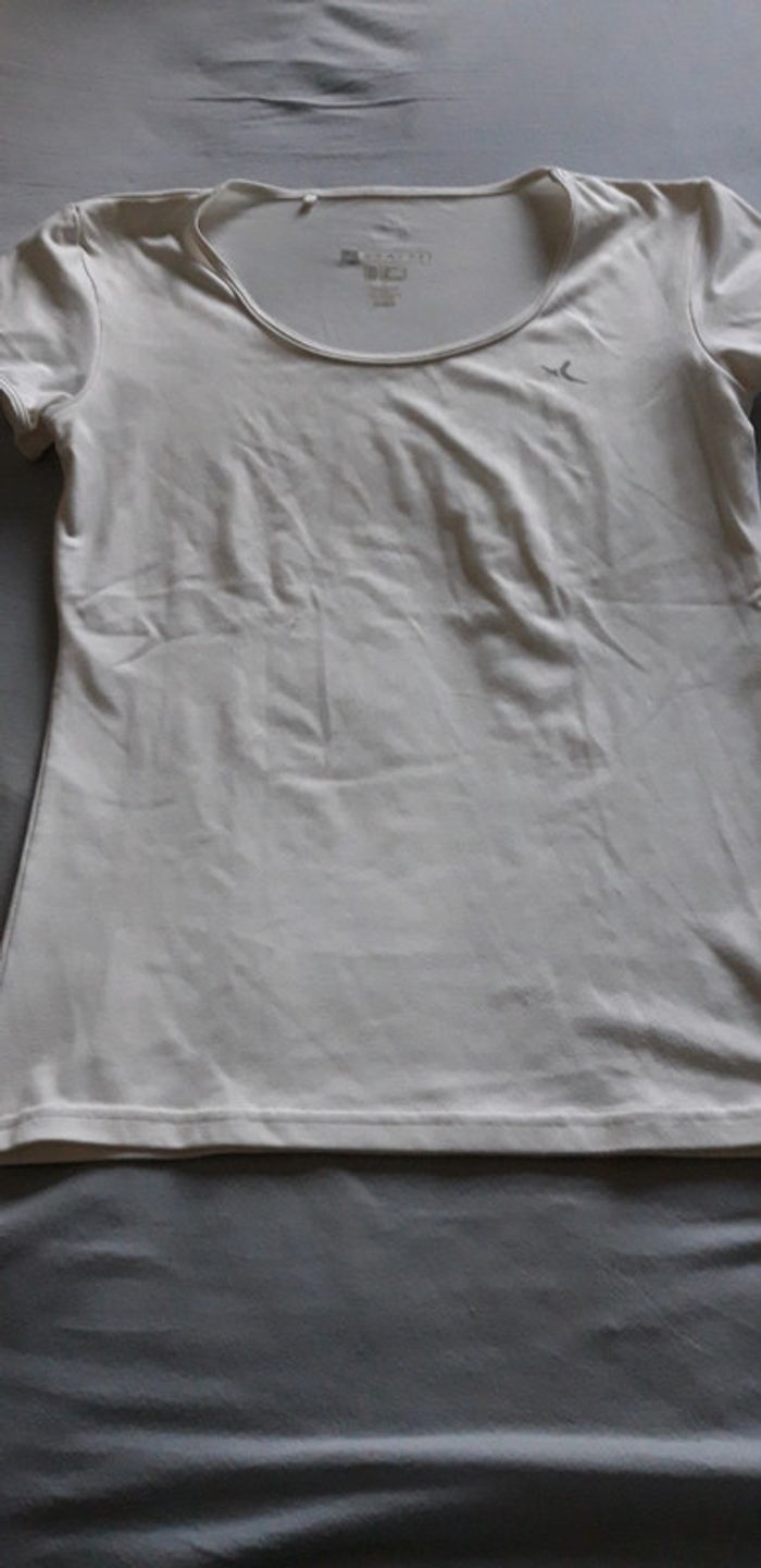 Maillot de sport femme Blanc Domyos Taille 40 Longueur 60 cm Manches courtes Bon état