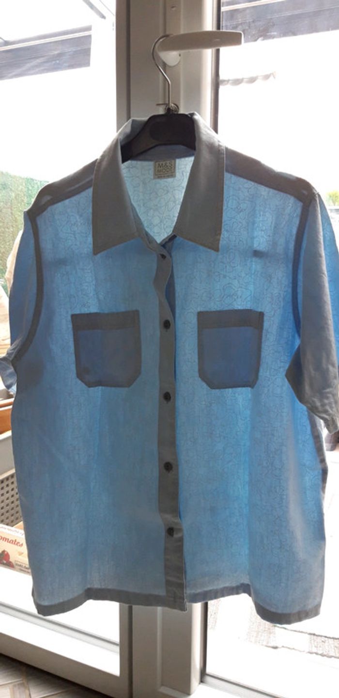 Chemisier femme Manches courtes Taille 40/42 MS MODE Bleu clair Très bon état Longueur 62 cm