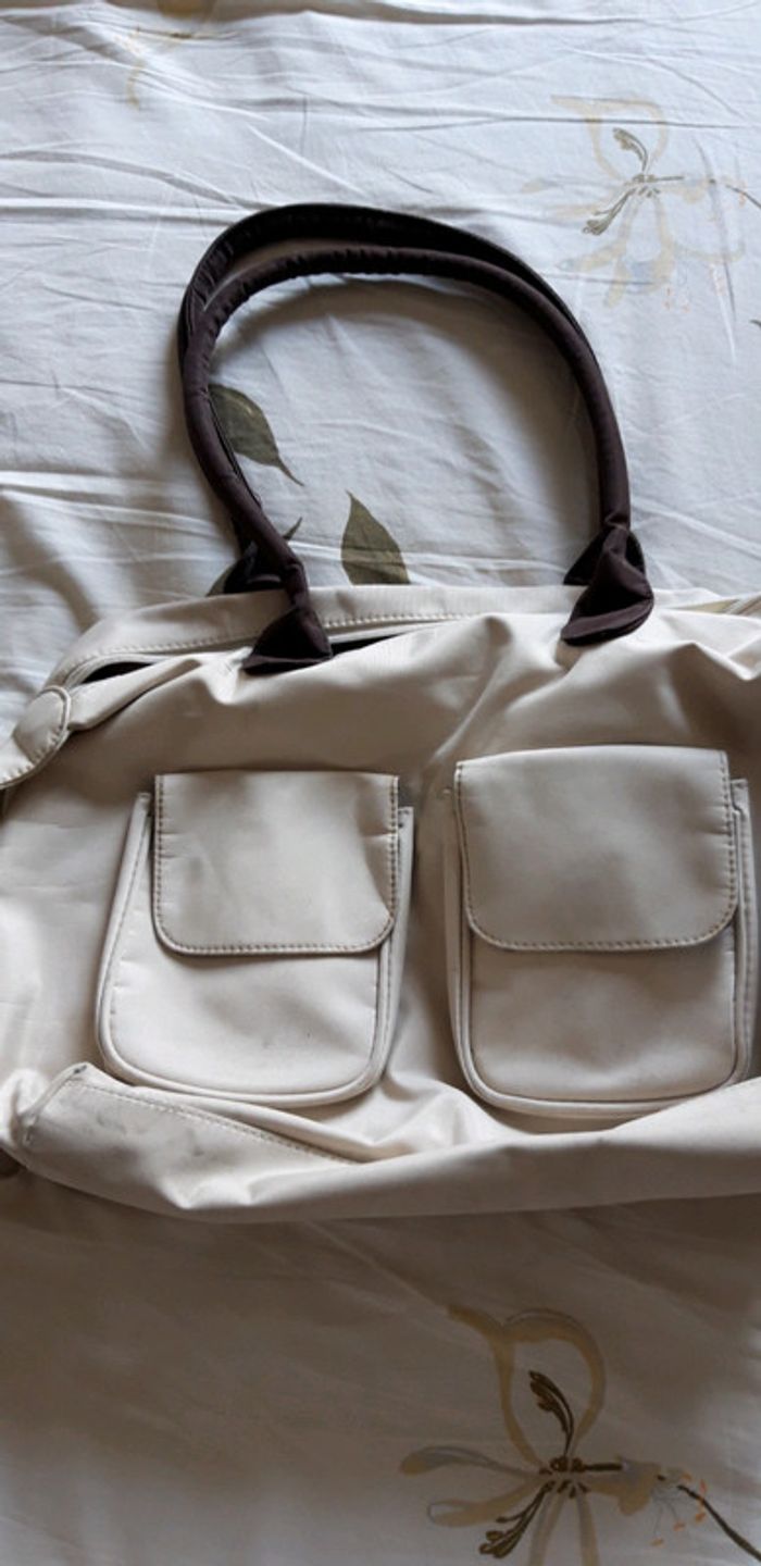 Sac à main Crème H 28 Cm Largeur 15 Cm Longueur 31 Cm 2 poches devant Petites taches