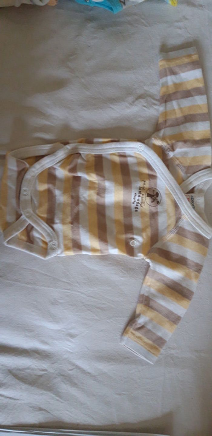 2 bodies naissance 1 er ,Manches longues absorba rayé 2 ème, blanc kaki Manches courtes 1 € les 2