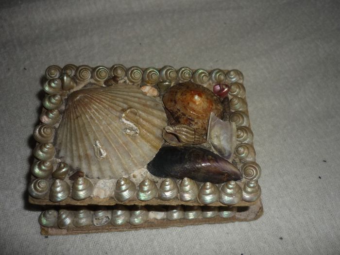 ancienne boite a bijoux vintage en coquillages taille longueur 10 cm ,largeur 8 cm hauteur 4 cm