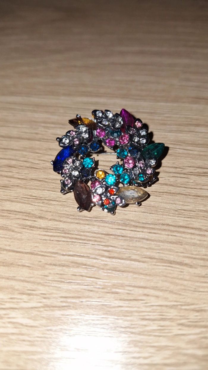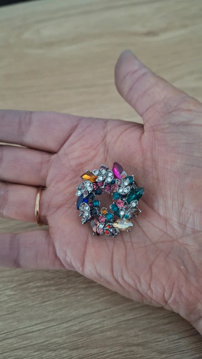 Petite broche multicolore avec strass et faux cristaux. Neuve. Jamais portée. - Diamètre : 3 cm.