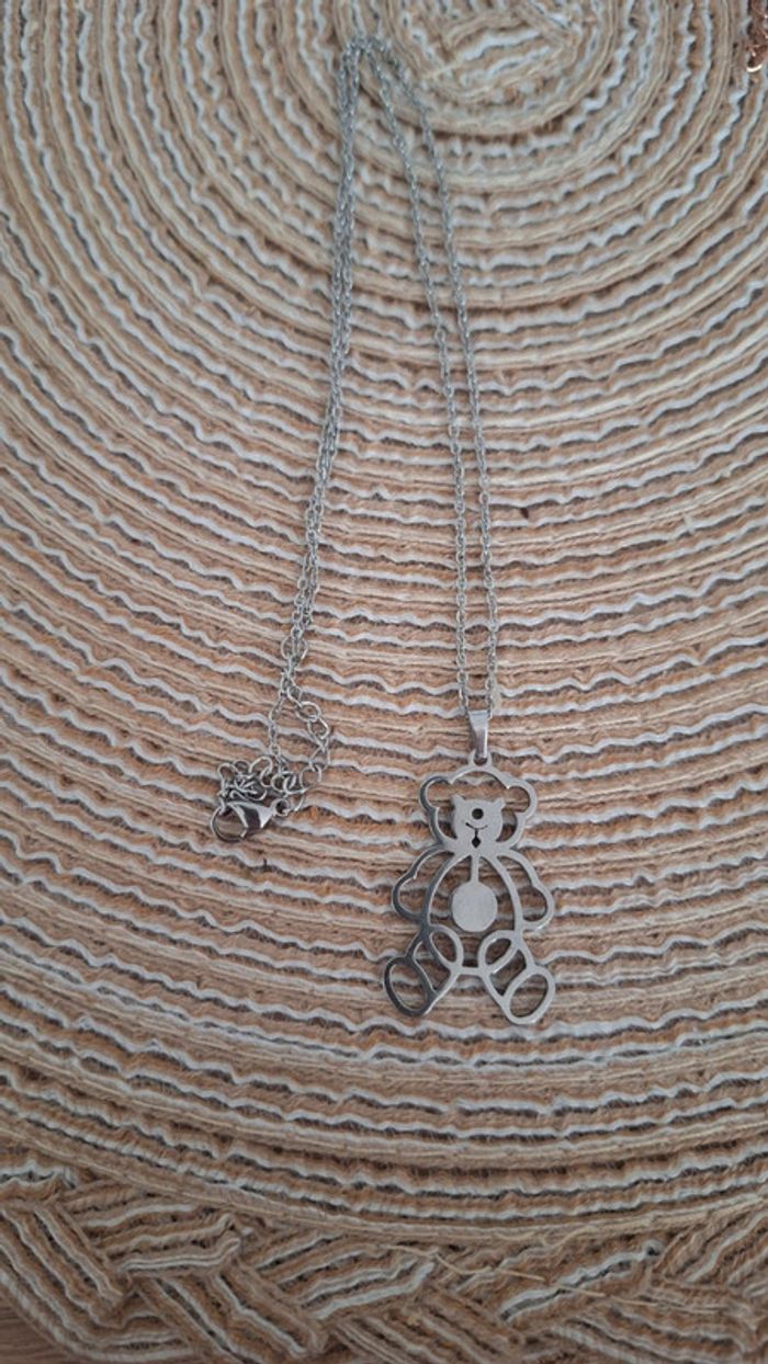 Collier en acier inoxydable avec nounours - photo numéro 3