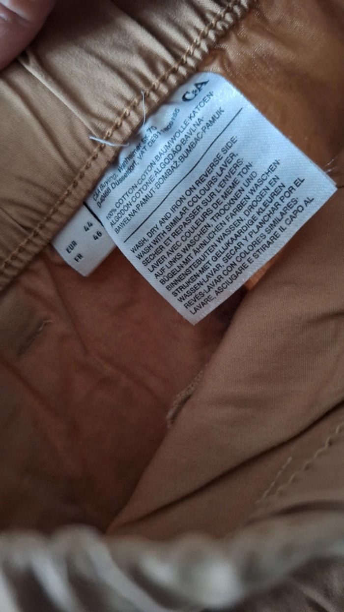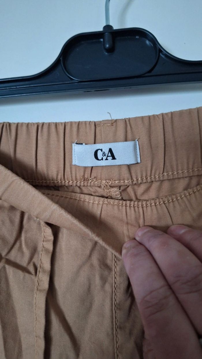 Short de couleur camel de chez C&A. 100% coton. Neuf. Taille 46. - Largeur ceinture : 49 cm sans étirer et extensible jusqu'à 57 cm. - Longueur : 44 cm. ⚠️ Pas d'envoi via Vinted Go.