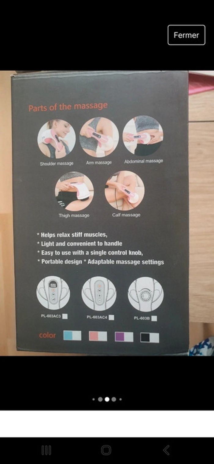 Appareil de massage pour les différentes zones du coprs. Neuf, il n'a jamais été utilisé. Vendu dans sa boîte d'origine avec tous les accessoires.