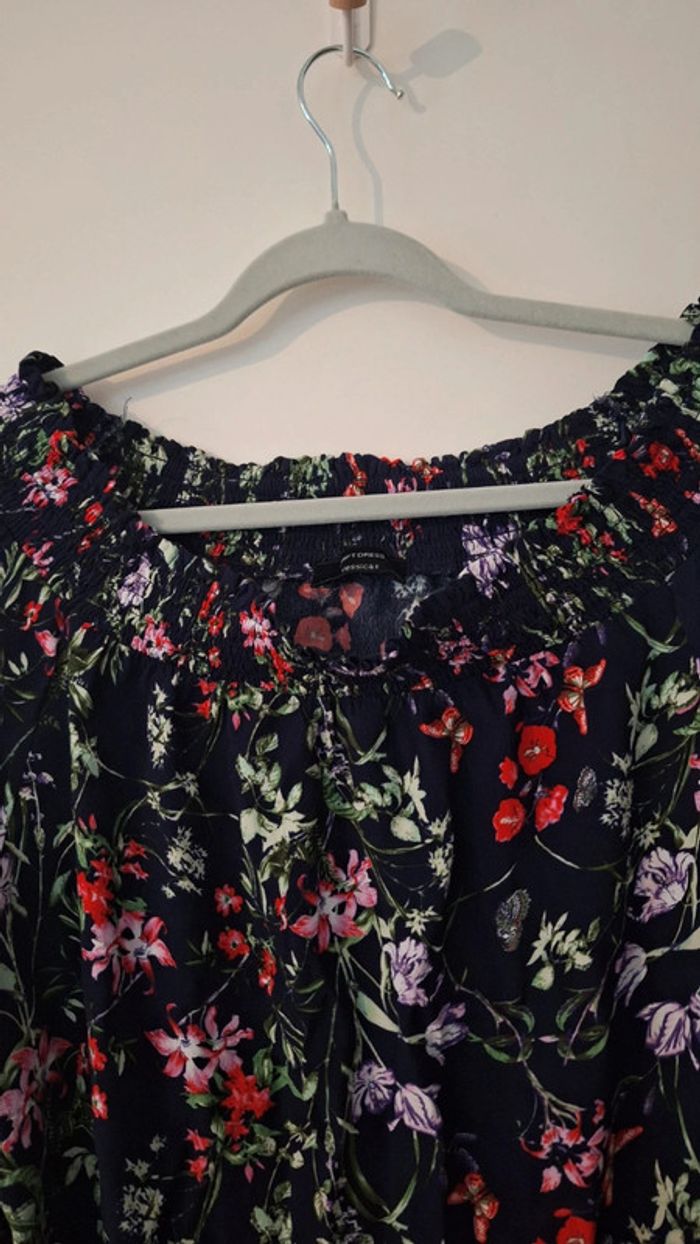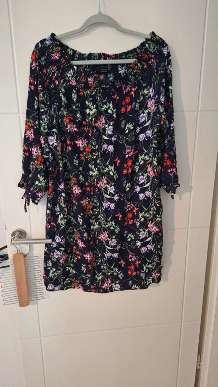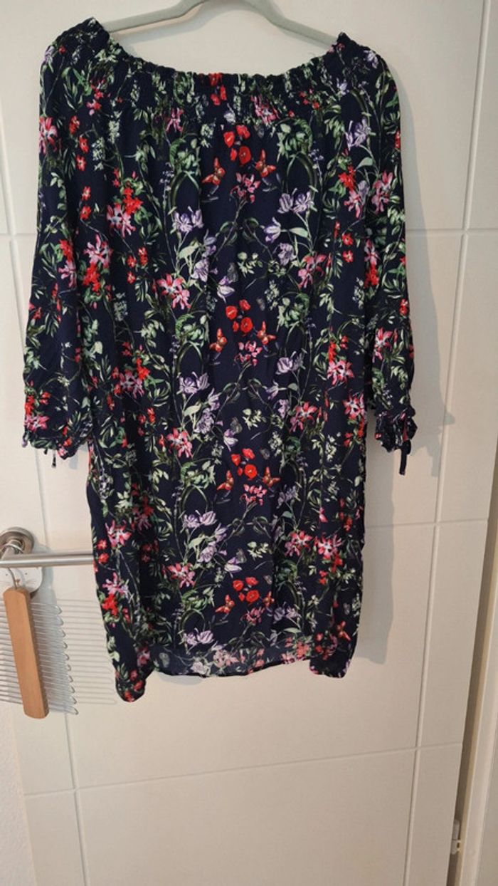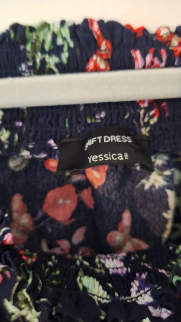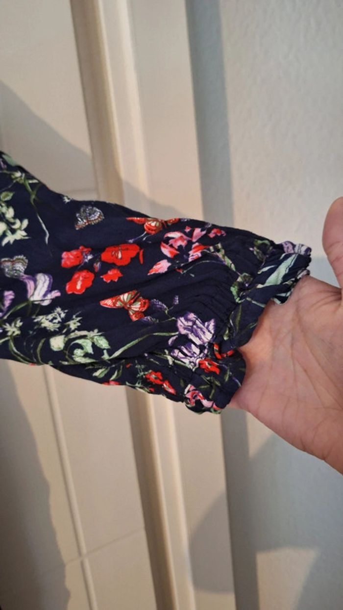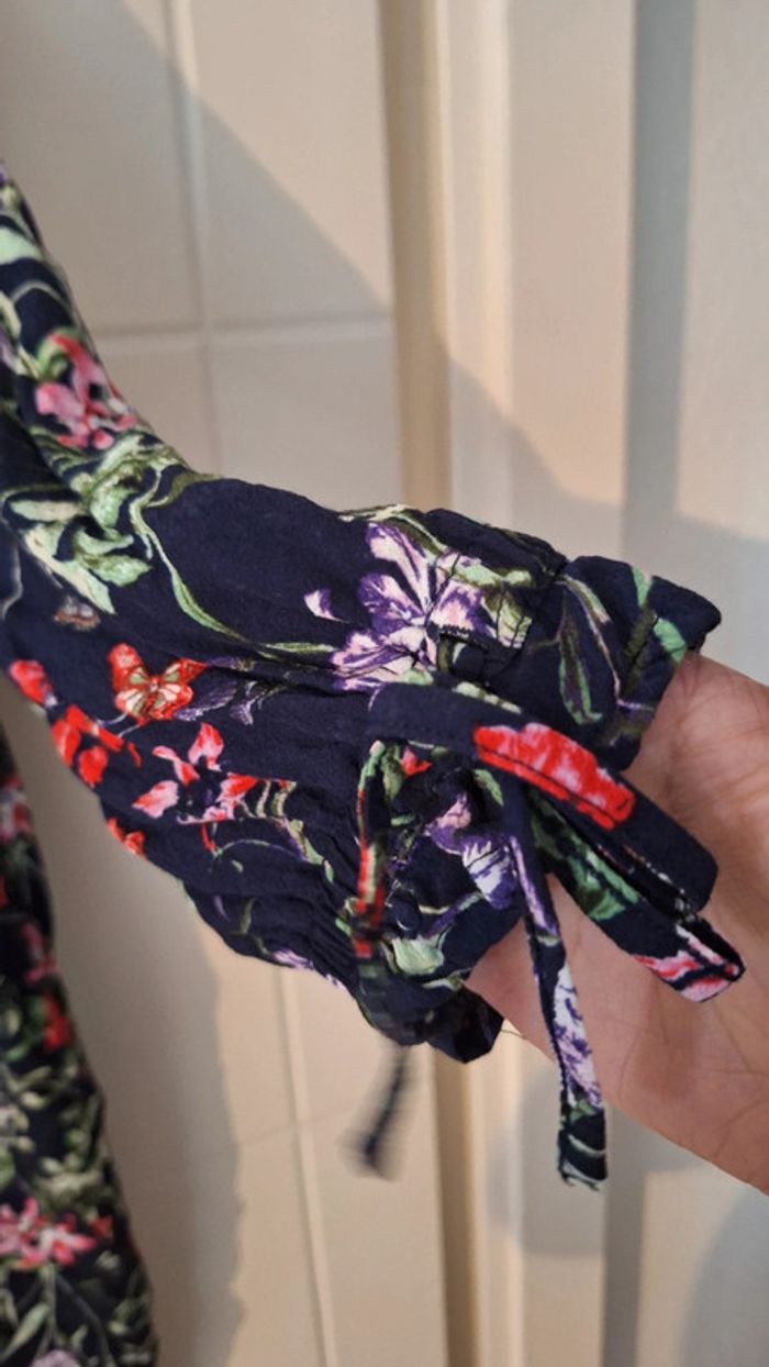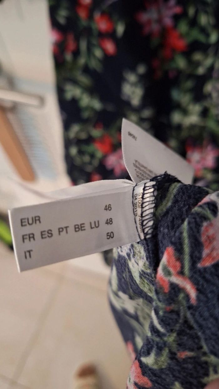 Robe bleu marine à fleurs 🌸 Elle se porte sur les épaules. Comme neuve, peu portée. Taille 48 FR ou 46 EU. - Largeur d'aisselle à aisselle : 61 cm. - Longueur : 91 cm.