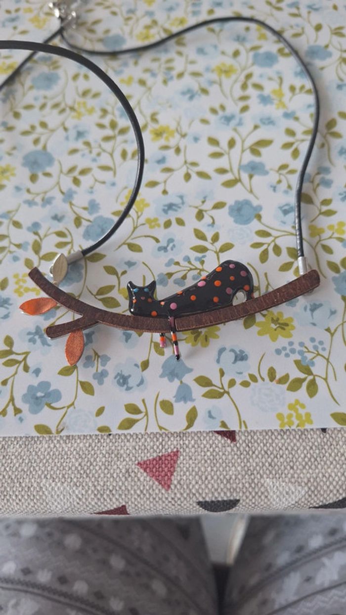 Collier 🐱 chat sur sa branche - photo numéro 1