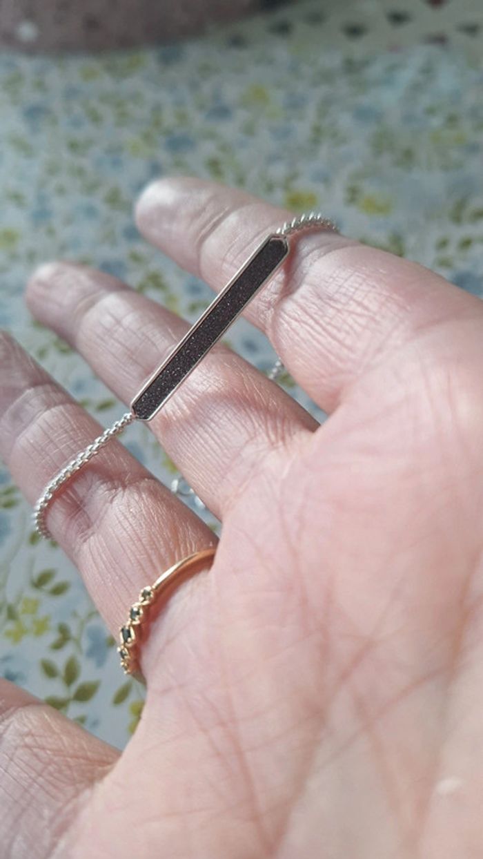 Bracelet argenté avec détail noir pailleté. Neuf.