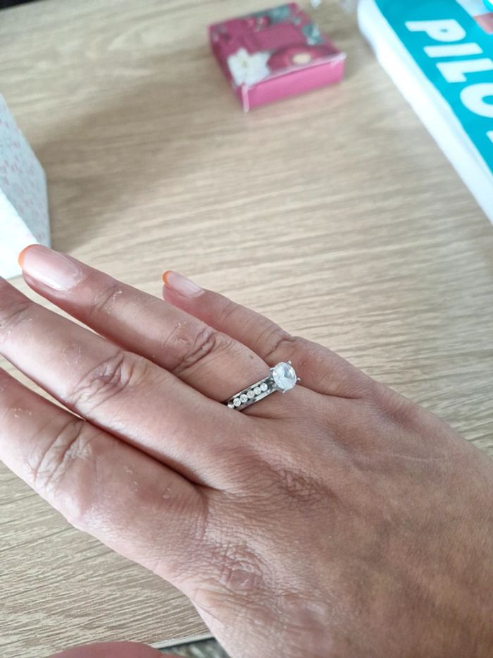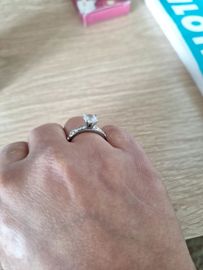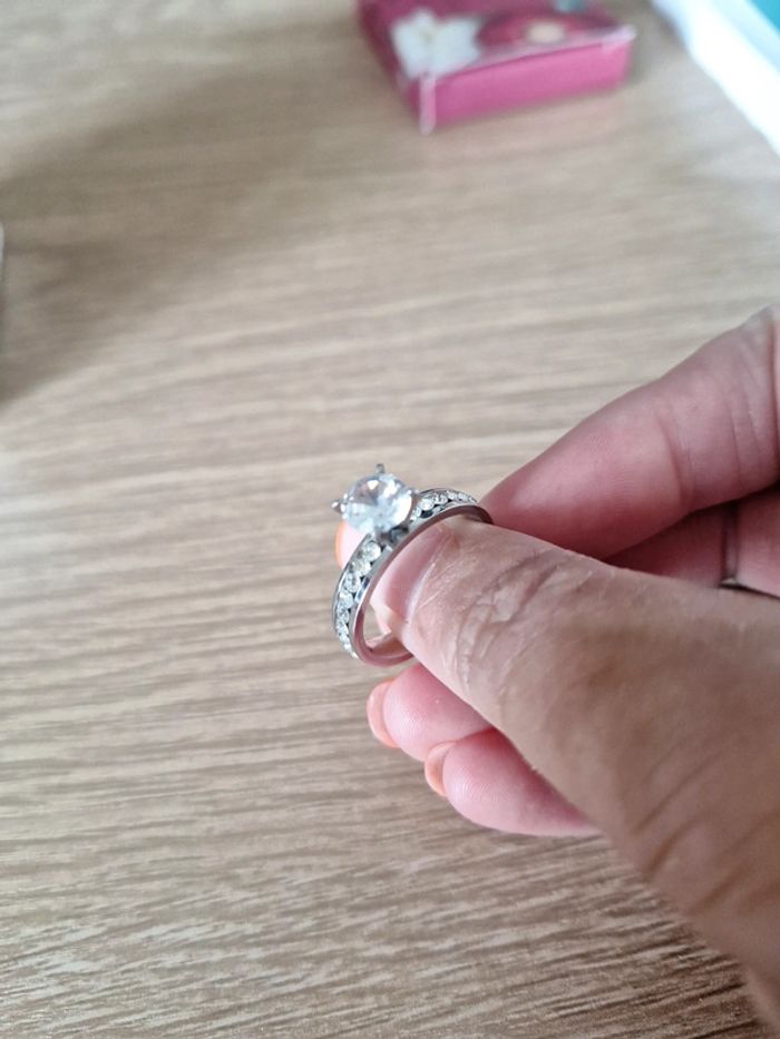 Bague style solitaire en acier inoxydable et zircons - photo numéro 4