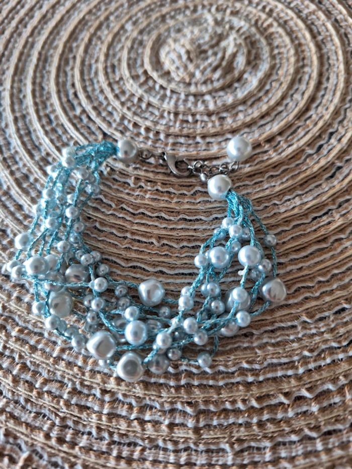 Bracelet fantaisie perles bleu ciel - photo numéro 1