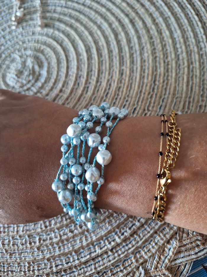 Bracelet fantaisie perles bleu ciel - photo numéro 2