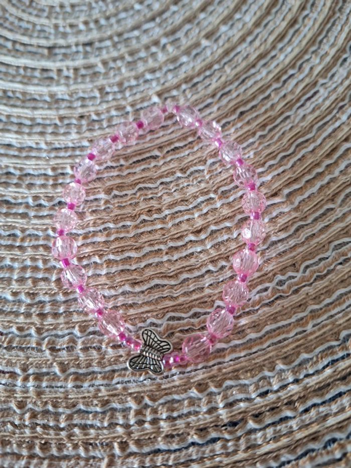 Bracelet avec duo de perles rose et papillon 🦋. Bracelet extensible. Très bon état.