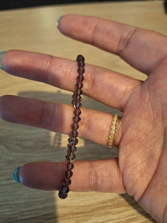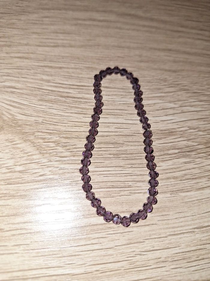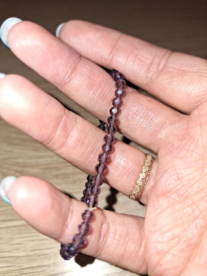 Bracelet violet foncé en perles coniques brillantes. Bracelet extensible. Très bon état.
