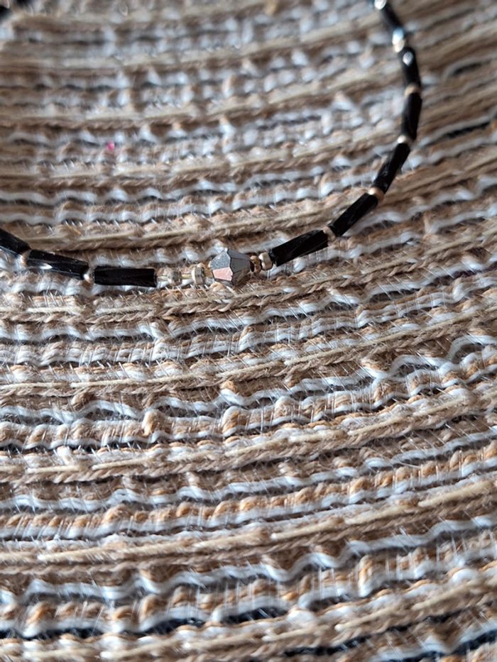 Bracelet fantaisie en perles noir et argenté. Bracelet extensible. Très bon état.