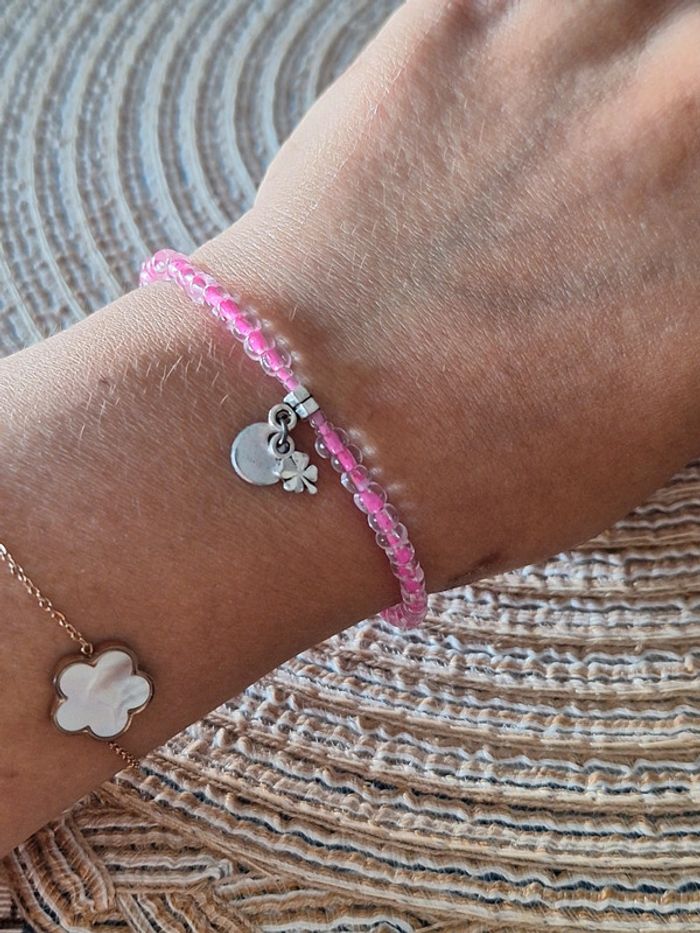 Bracelet fantaisie rose avec breloques - photo numéro 2
