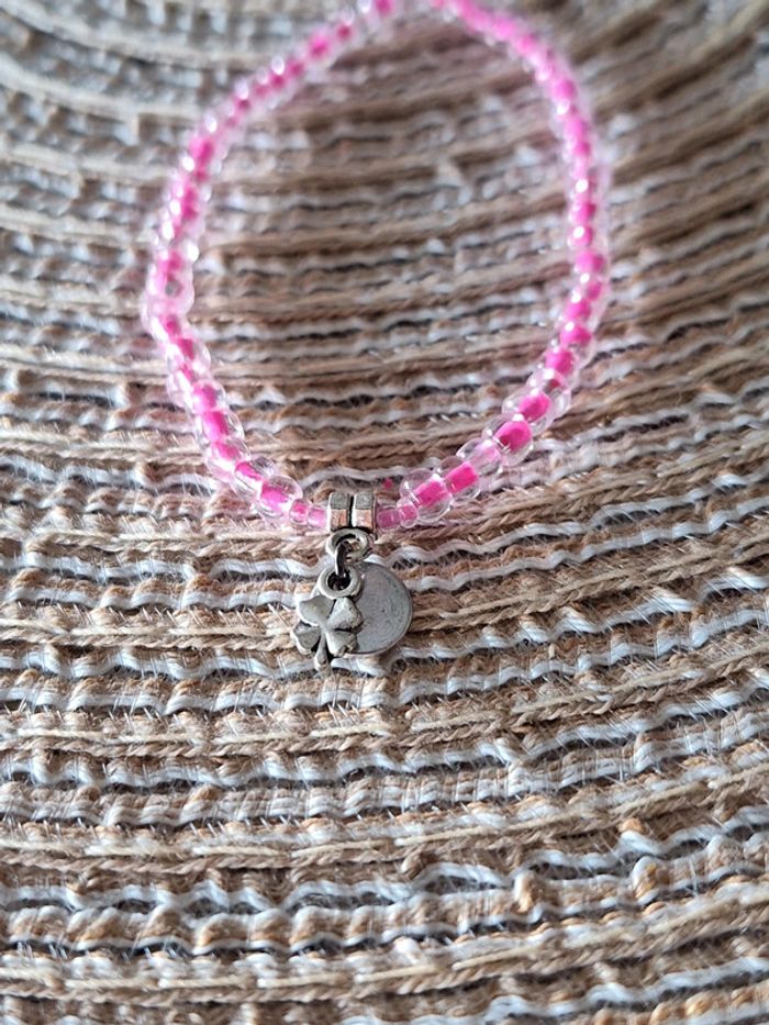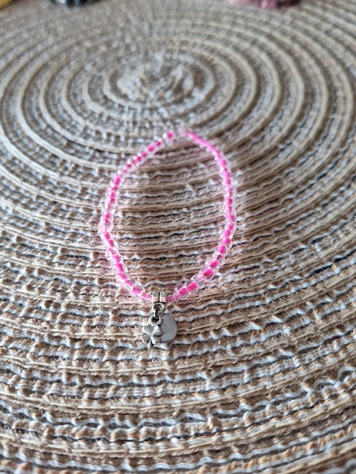 Bracelet fantaisie rose avec breloques - photo numéro 1