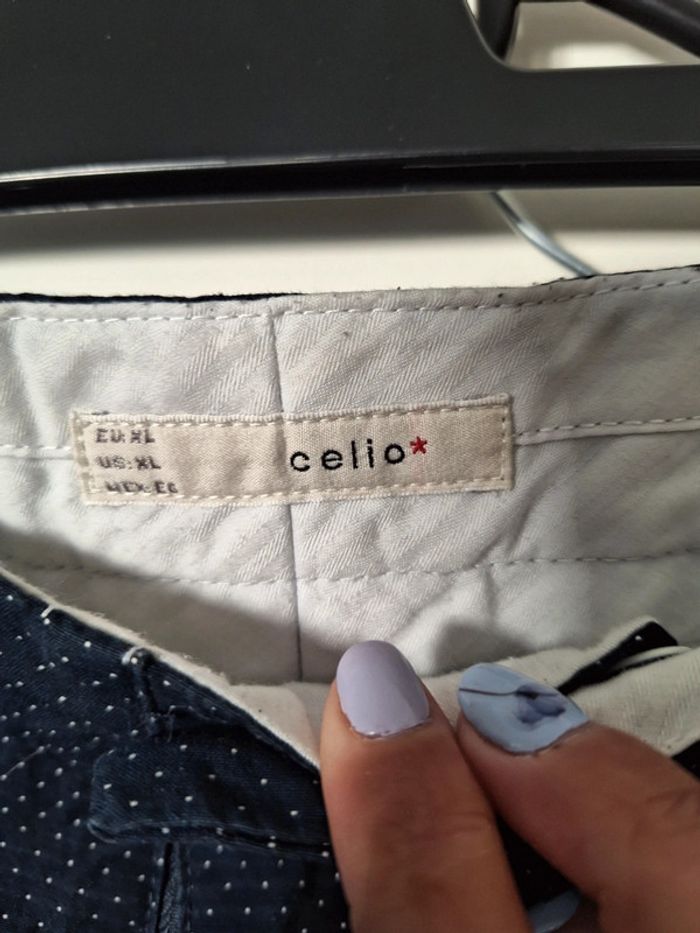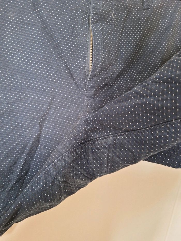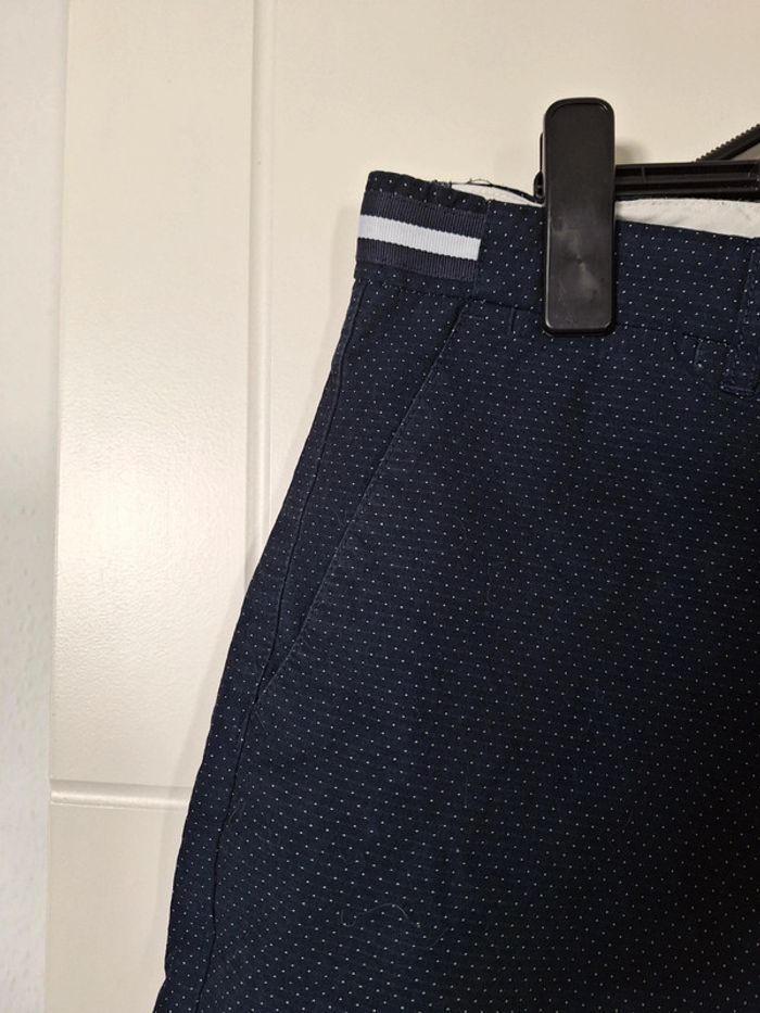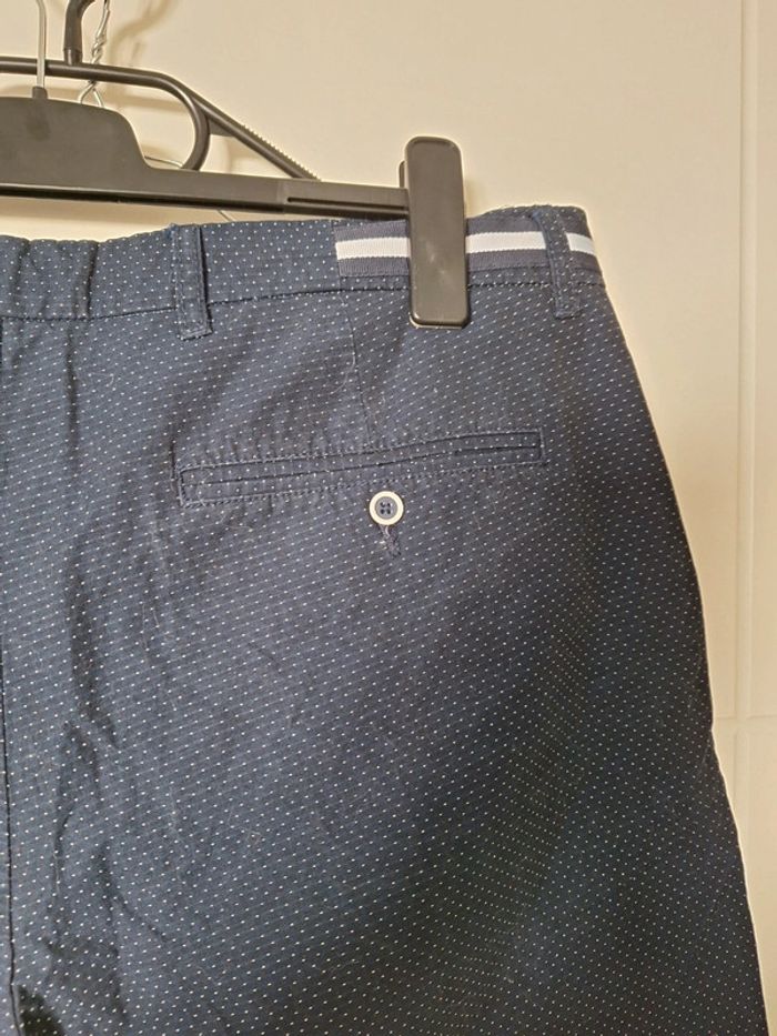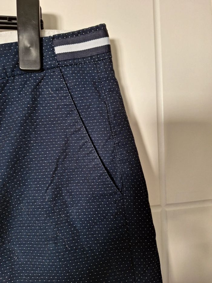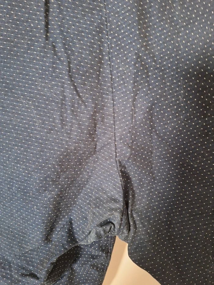 Short de couleur bleu marine avec des petits points blancs. Marque Celio. Il a été porté plusieurs fois, légère usure à l'entrejambe mais reste en très bon état. Taille XL.