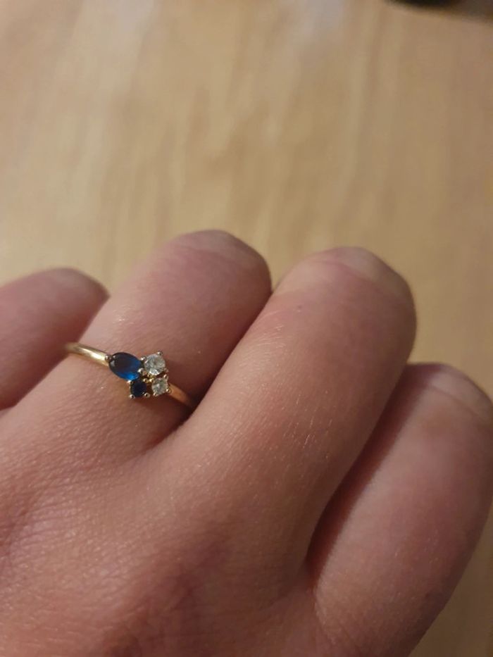 Bague fantaisie dorée avec petites pierres. Très bon état. Taille 58.