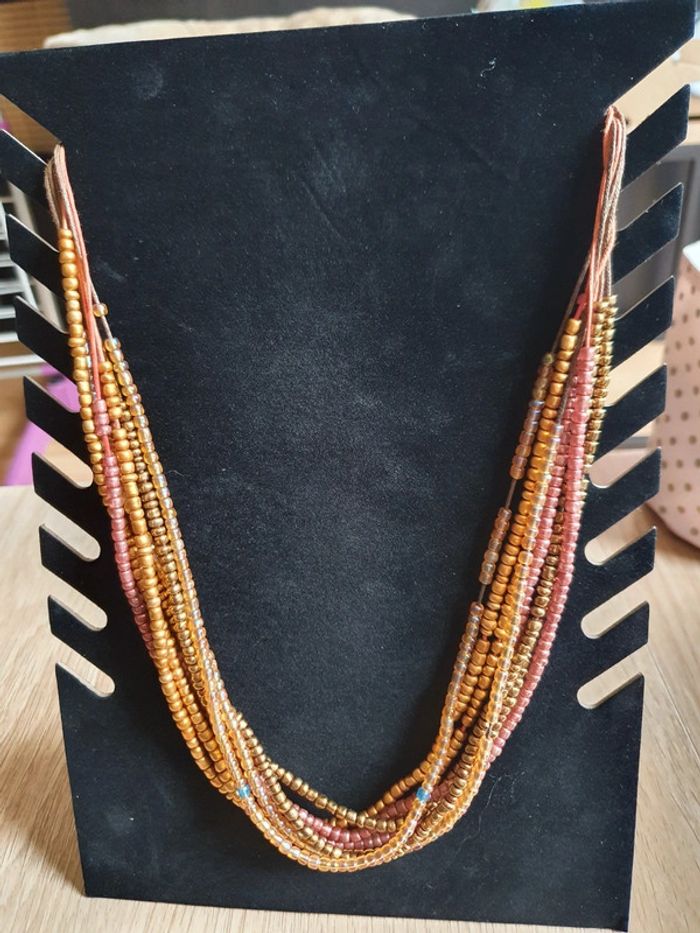 Collier de perles dans les tons marron. Acheté à l'île Maurice. Très bon état.
