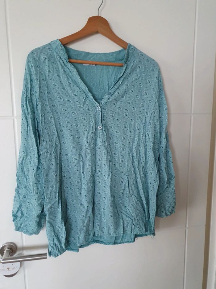 Blouse motif fleurs vert d'eau - photo numéro 1