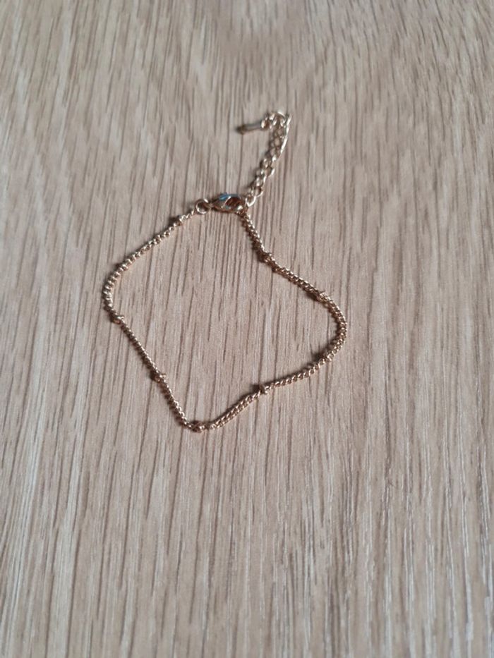 Bracelet doré en laiton avec petites perles dorées. Neuf, jamais porté. - Longueur totale : 18.5 cm.