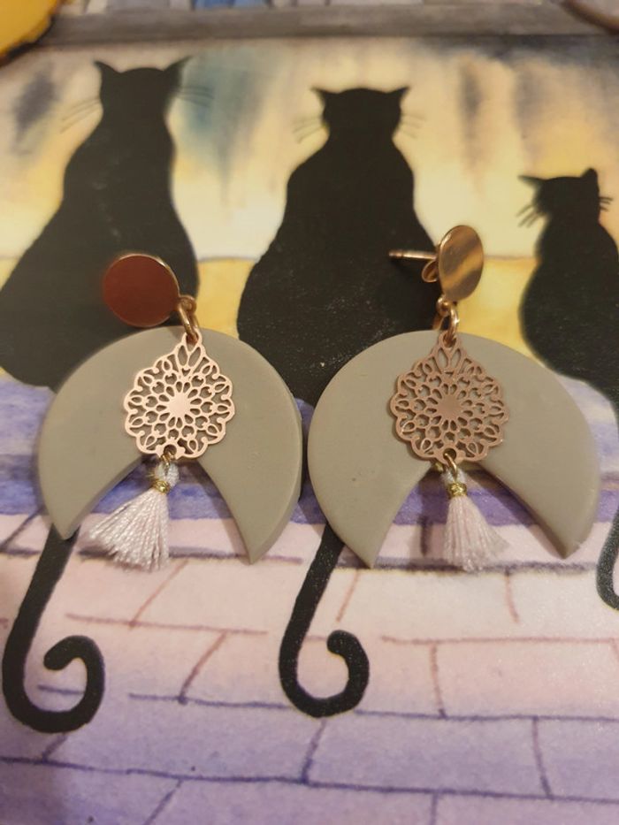 Boucles d'oreilles fantaisies de couleur doré et taupe