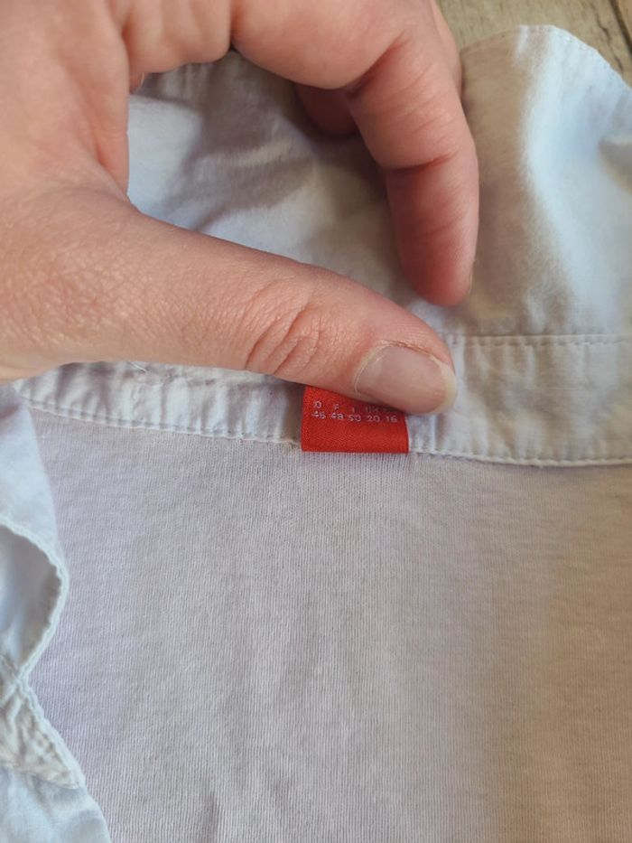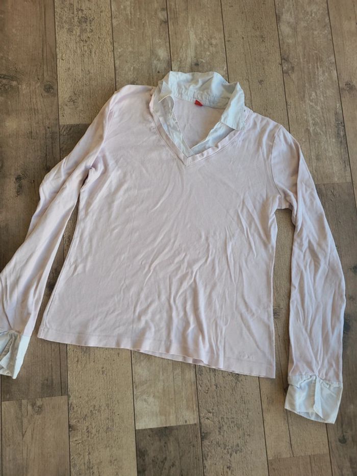 Pull col en V , tres tres leger accro voir sur la photo mais une fois les bord replier ca ne ce vois pas. Il est marquer 48 sur l'étiquette mais il taille beaucoup plus petit plus vers 44 #femme44winifreddepoortere