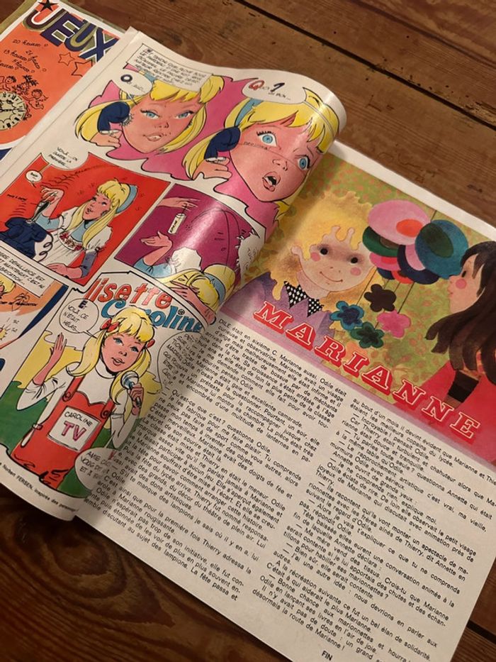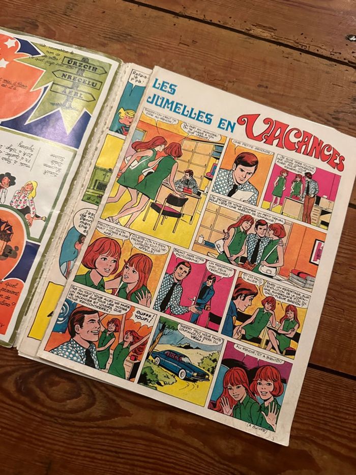 Magnifique édition La reliure est à refaire Contient plein de trésors vintage dont des bd, activités, denis la malice, Caroline et ses amis… Envoi rapide et soigné Non négociable 🙏☺️