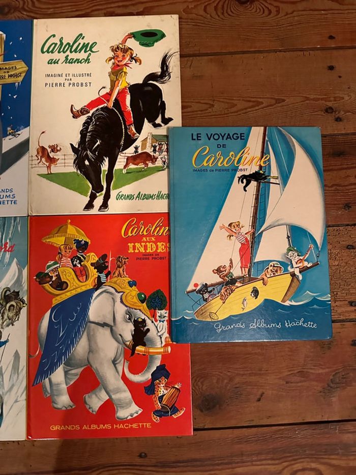 Envoi rapide et soigné Lot non négociable et non dissociable comprenant les titres suivants en TRÈS BON ÉTAT (très rare pour ces ouvrages vintage de Pierre Probst 🎇🎆): Caroline aux sports d’hiver Caroline au ranch Caroline au pôle nord Caroline aux Indes Le voyage de Caroline