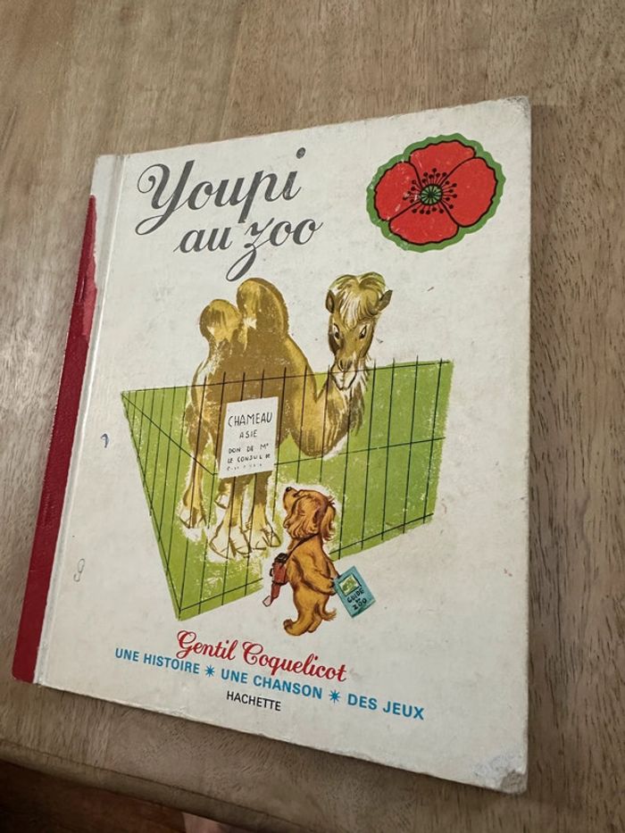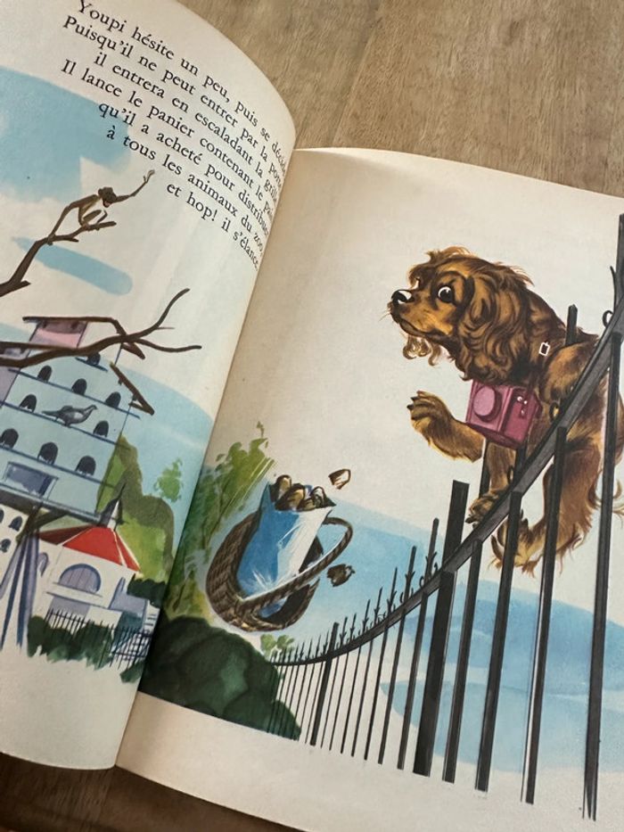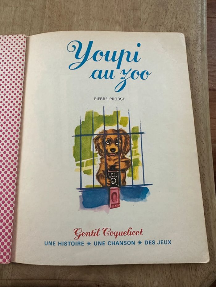 Livre album carton ancien gentil coquelicot Pierre Probst - Youpi au Zoo chien