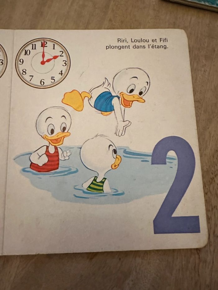 Livre ancien cartonné Walt Disney La ronde des heures éditions deux coqs d’or horloge
