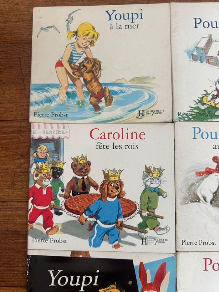 Envoi rapide et soigné Non dissociable et non négociable Lot comprenant : - Youpi à la mer - Le Noël de Pouf et Youpi - Caroline fête les rois - Pouf et Noiraud aux sports d’hiver - Youpi à l’école - Pouf et Youpi boxeurs