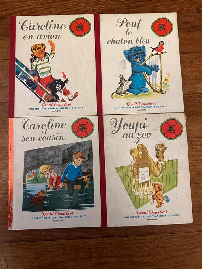 Lot de 4 volumes très anciens et tous complets en bon état (pour des livres de plus de 50 ans). Envoi rapide et soigné. 🧡☺️ Lot non dissociable et non négociable comprenant : - Caroline en Avion - Pouf le chaton bleu - Caroline et son cousin - Youpi au Zoo