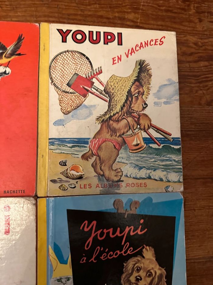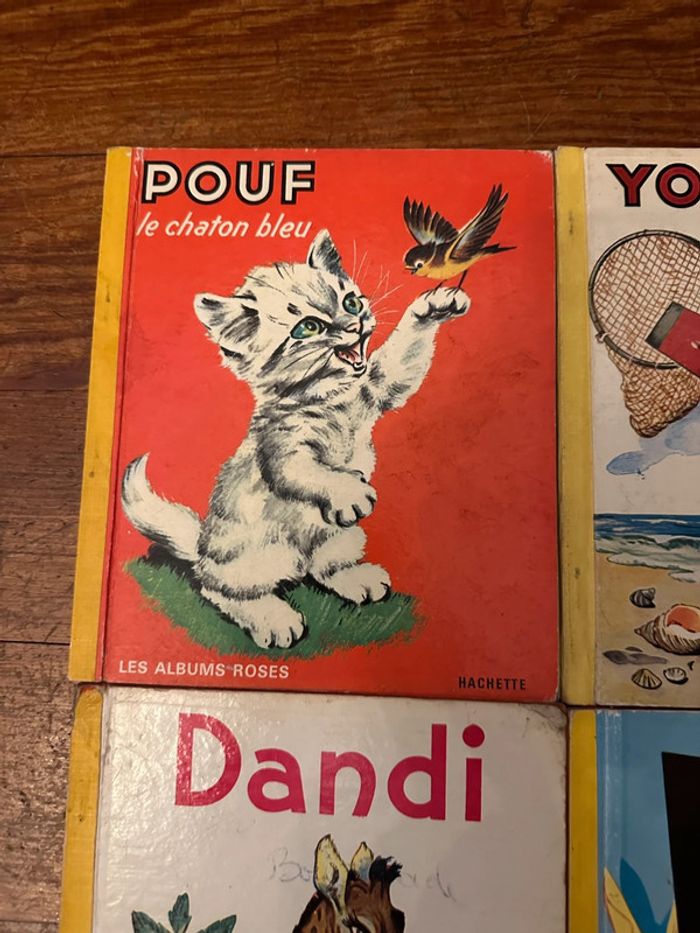 Lot de 4 volumes très anciens et tous complets en bon état (pour des livres de plus de 50 ans). Envoi rapide et soigné. 🧡☺️ Lot non dissociable et non négociable comprenant : - Pouf le chaton bleu - Youpi en vacances - Dandi la girafe - Youpi à l’école