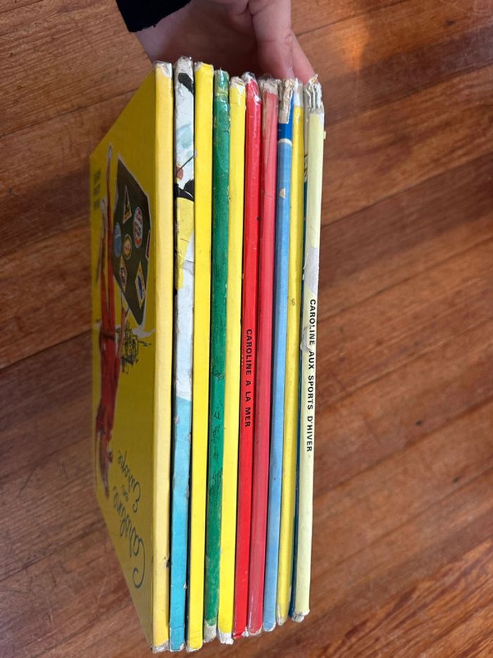 Ils sont tous COMPLETS et en bon état général, ce sont des livres qui ont plus de 60 ans d’ancienneté; les premières éditions. Envoi rapide et soigné 🧡☺️ Lot non dissociable et non négociable comprenant les titres suivants : - Caroline sur la Lune - Caroline au Ranch - Caroline au Pôle Nord - Caroline en Europe - Une fête chez Caroline - Caroline à la mer - La maison de Caroline - Caroline aux sports d’hiver - L’automobile de Caroline - Le voyage de Caroline