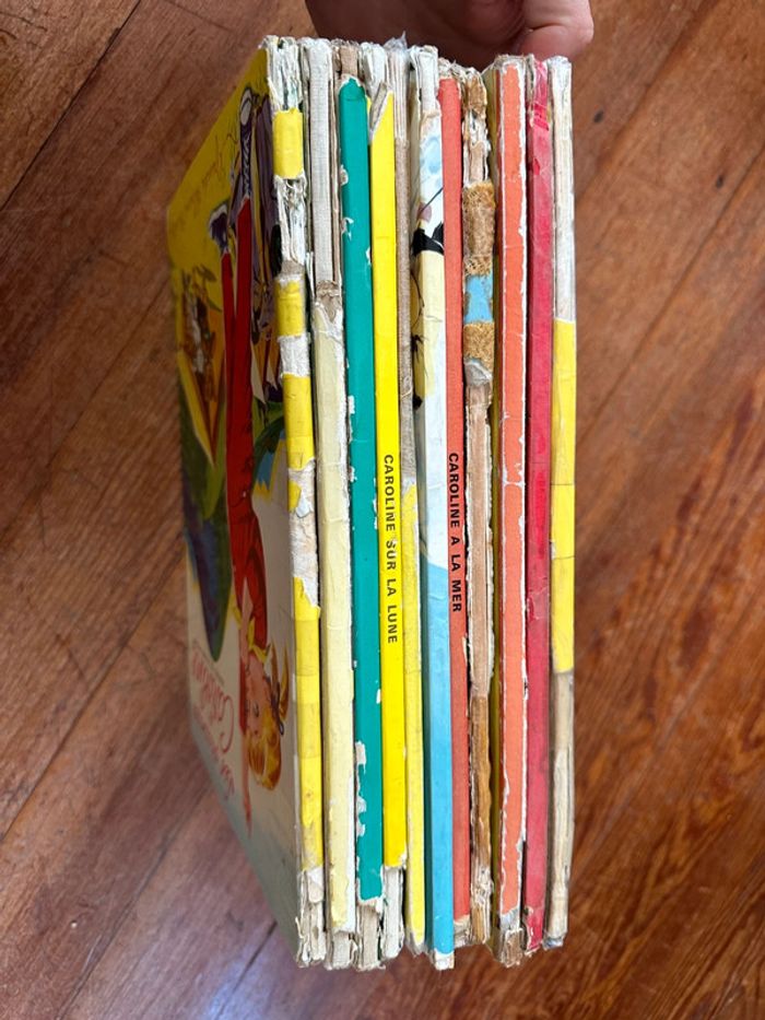 Ils sont tous COMPLETS mais en état satisfaisant (= avec défauts), ce sont des livres qui ont plus de 60 ans d’ancienneté; les premières éditions. Envoi rapide et soigné 🧡☺️ Lot non dissociable et non négociable comprenant les titres suivants : - Caroline au Ranch - Caroline sur la Lune - L’automobile de Caroline - Les vacances de Caroline - Caroline aux Indes - Caroline aux sports d’hiver - Une fête chez Caroline - Le Voyage de Caroline - Caroline à la mer - Caroline au Pôle Nord - Caroline en Europe