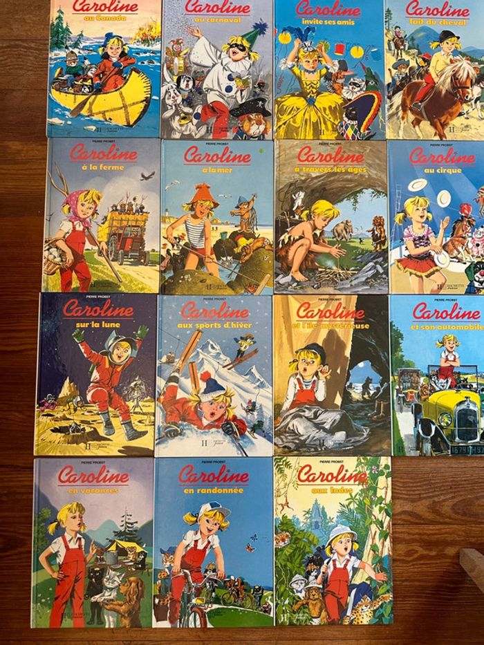 Incroyable lot de 23 livres Caroline anciens vintage Pierre Probst bd album