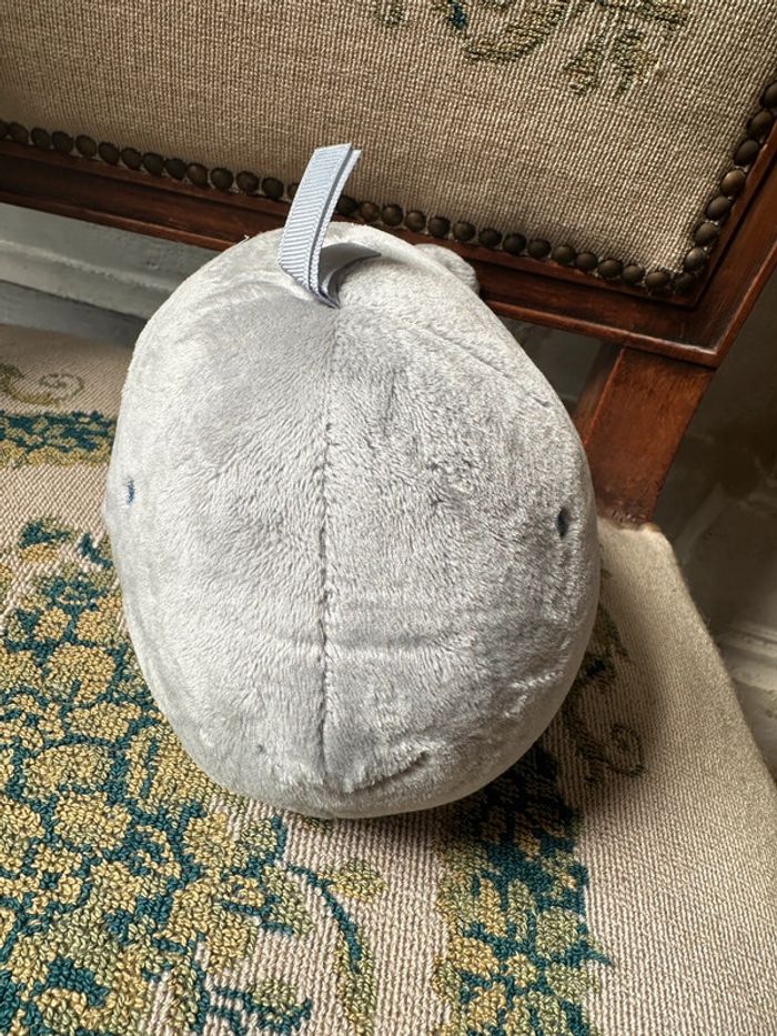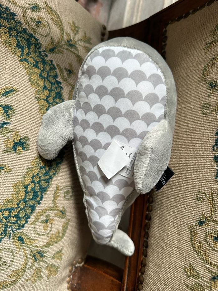 NEUF Cyrillus doudou peluche baleine couchée carreaux 25cm dans son sac grise naissance - photo numéro 5